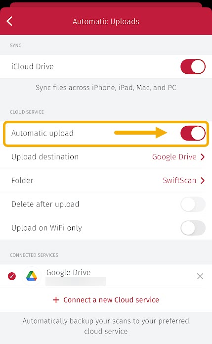 Alternative Option: Tap on the Automatic Upload icon on the app's home screen. - Delete the Cloud Service – Remove the problematic cloud service from your list by tapping the delete option.
